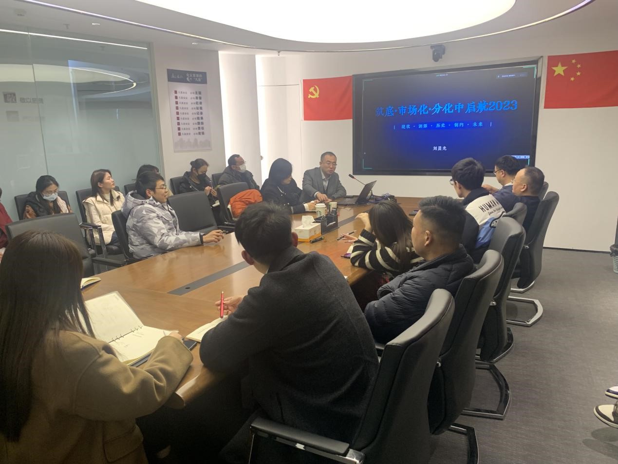會上,劉晨光以《市場化.筑底.分化中起航2023》為主題,回顧了2012-2015年行業(yè)危機(jī)的經(jīng)驗和教訓(xùn),講述了在“穩(wěn)經(jīng)濟(jì)”總基調(diào)下地產(chǎn)行業(yè)的底線和樂觀因子,認(rèn)為當(dāng)下房地產(chǎn)行業(yè)的政策環(huán)境、信用環(huán)境和市場環(huán)境均已大幅改變,地方國企作為城市建設(shè)和運營的主力軍,在土地成片開發(fā)、軸帶擴(kuò)張、TOD開發(fā)、未來社區(qū)建設(shè)等領(lǐng)域,都處于主導(dǎo)地位。劉老師結(jié)合華發(fā)股份的成功案例進(jìn)行講解,深入淺出、通俗易懂,為全體員工充了電、補(bǔ)了鈣。